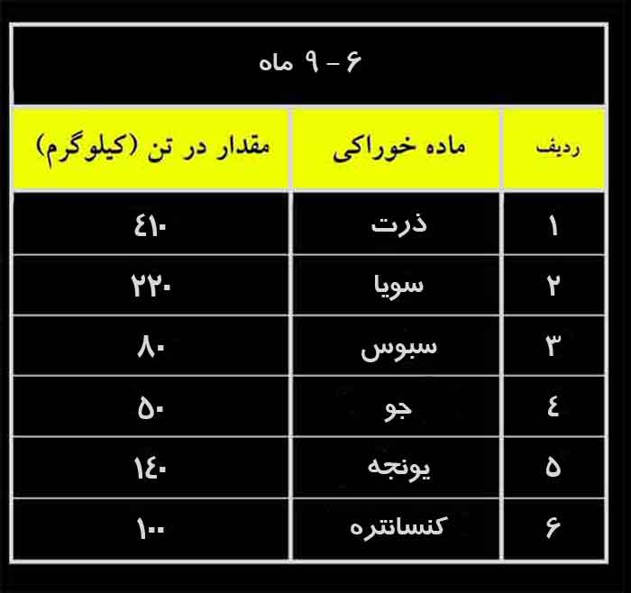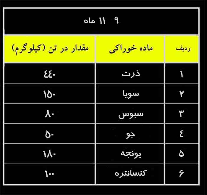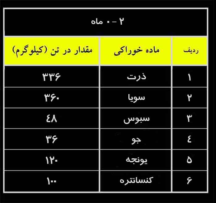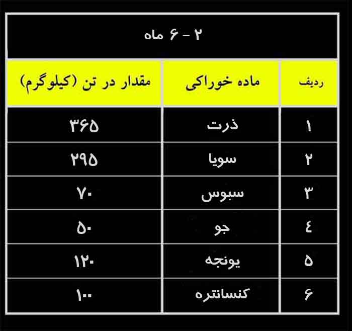 جیره پرواری پیشنهادی نوع دوم – کنسانتره نوع دوم
