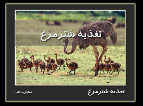 بطور کلی غذای شتر مرغ دارای ترکیباتی مابین غذای گاو و مرغ بوده و از دو قسمت علوفه (مانند یونجه و شبدر ) و کنستانتره (شامل : جو ، ذرت ، سویا ، مکملهای معدنی و ویتامینه و….) تشکیل شده است .… ادامه مطلب
